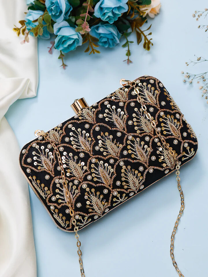 Black Embroidered Clutch Bag for Women | Handmade Ethnic Party Purse | Indian Bridal & Festive Clutch