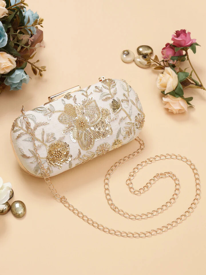 White Embroidered Clutch Bag for Women | Handmade Ethnic Party Purse | Indian Bridal & Festive Clutch | Wedding Return Gift