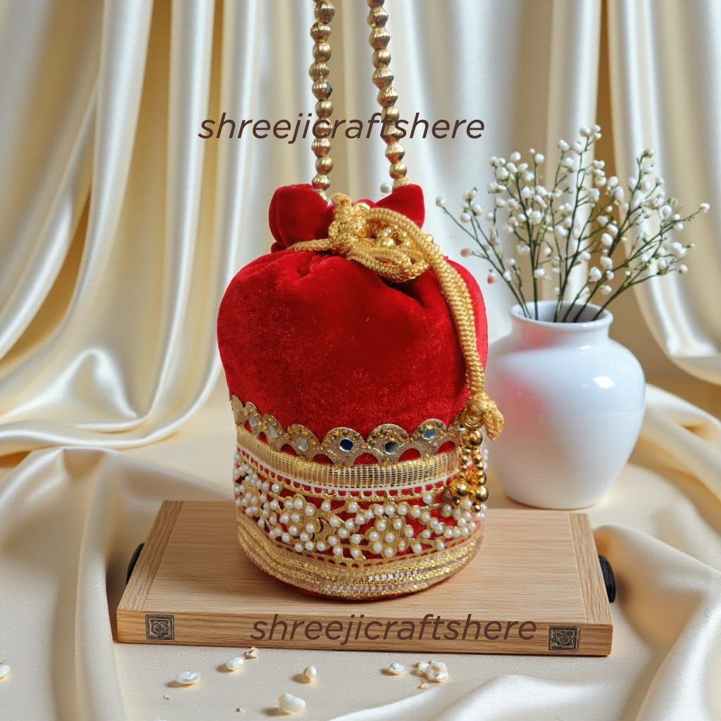 • Handcrafted Heavy Potli Bag | Indian Bridal Clutch Purse | Elegant Wedding & Party Accessory