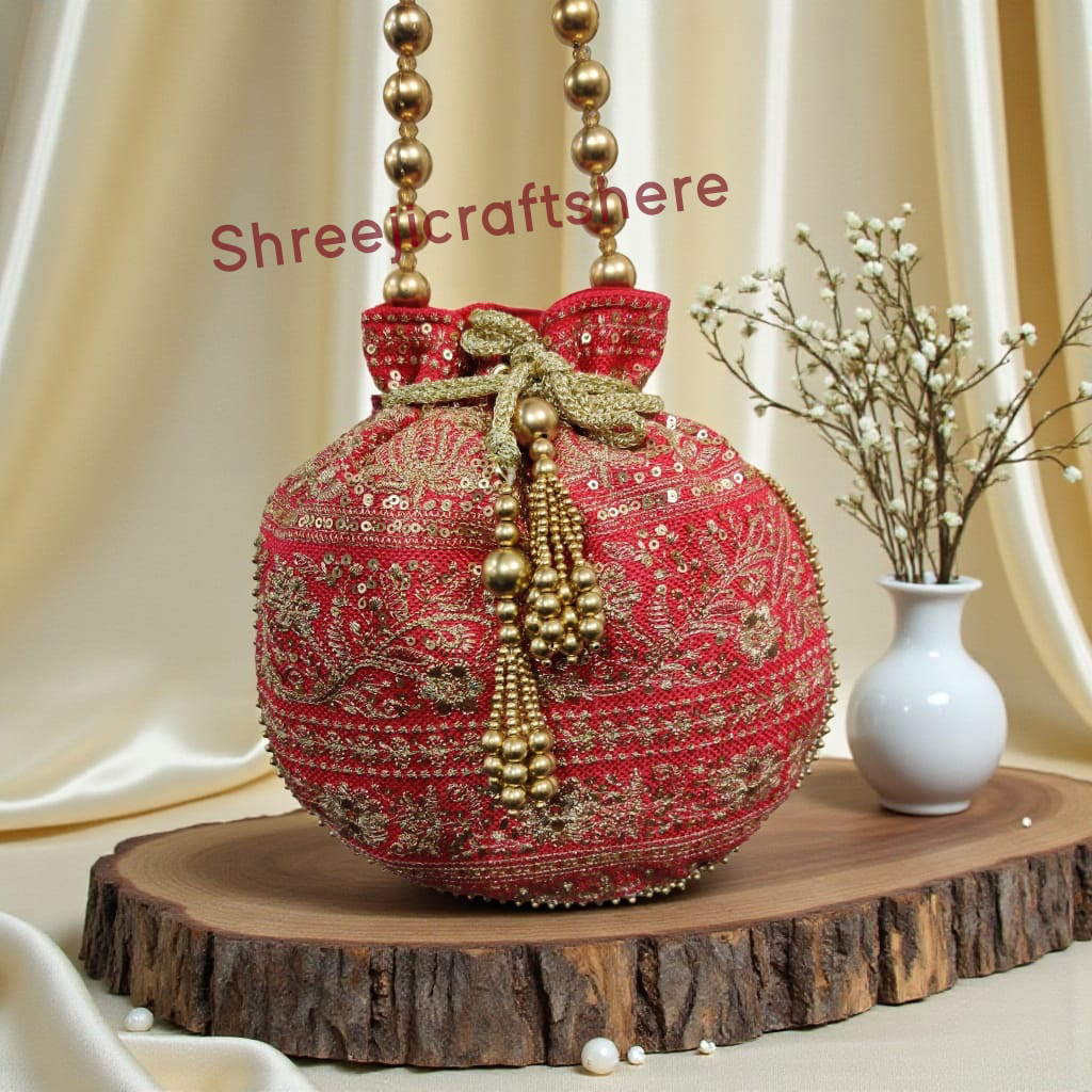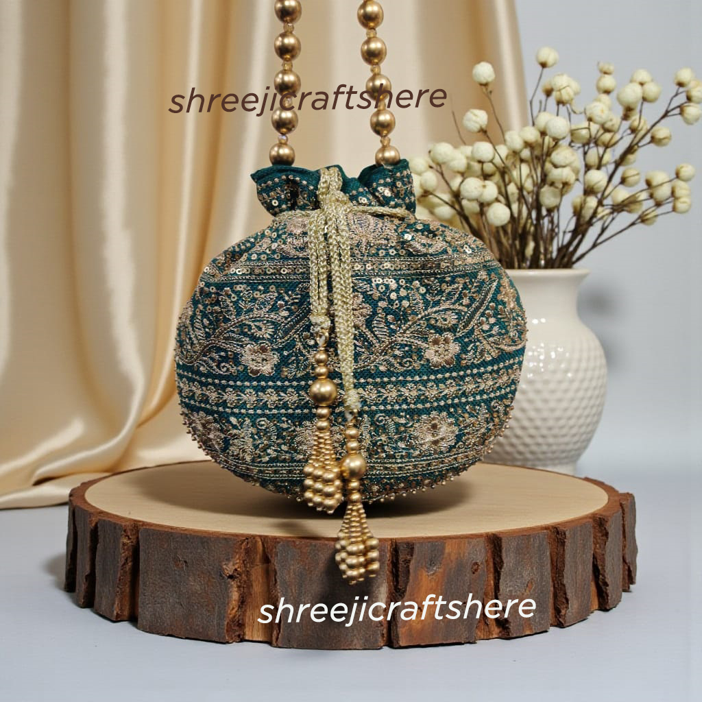 Handcrafted Heavy Potli Bag | Indian Bridal Clutch Purse | Elegant Wedding & Party Accessory