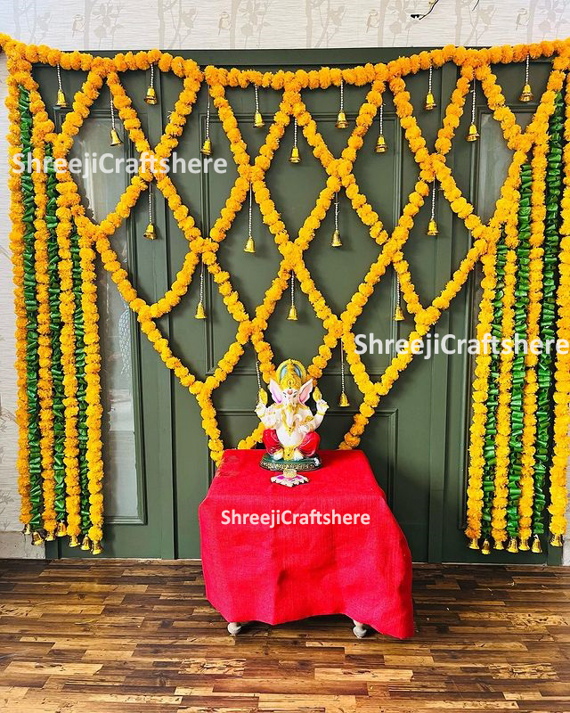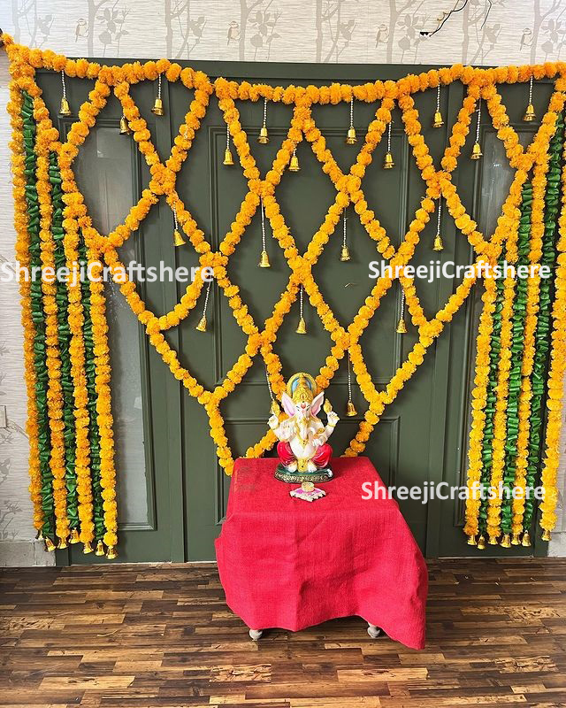 Marigold and Leaf Backdrop | Backdrop Decoration | Wedding, Haldi, Birthday, Festival Decoration | Multiple Sizes & Colors