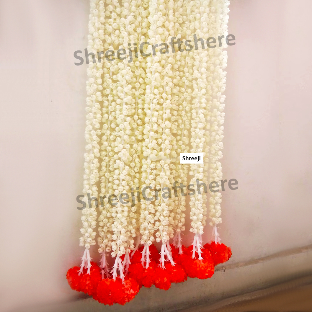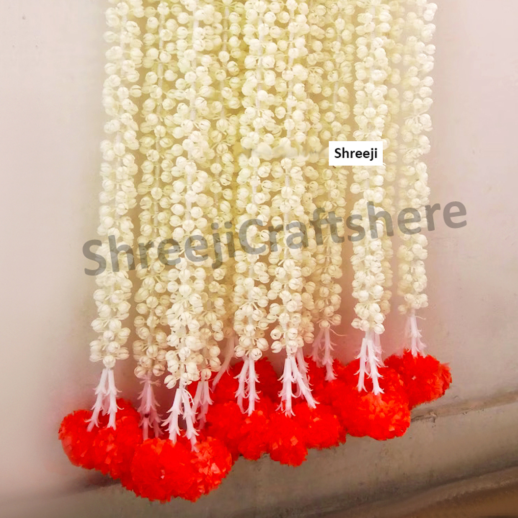 Mogra Marigold Strings | 5 Feet’ Mogra Decoration | Main Door, Wedding, Diwali, Puja, Home Decor