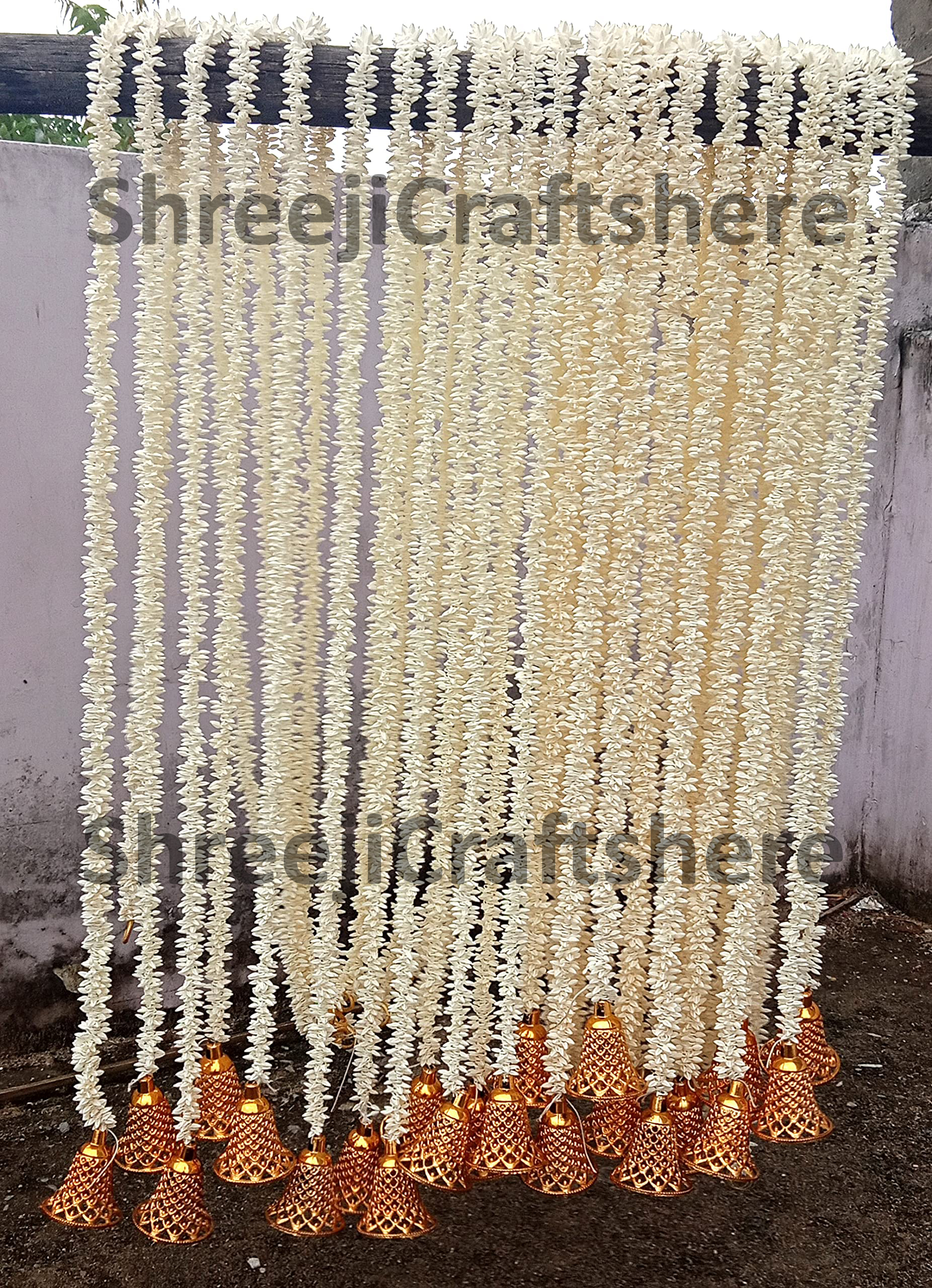Scented Jasmine with Bells | 5 Feet’ Floral Decoration | Backdrop, Main Door, Wedding, Diwali, Puja, Home Decor
