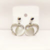 Embrace timeless elegance with our “Eternal Love” Heart Drop Earrings. These exquisite pieces feature a unique “heart within a heart” design, showcasing a lustrous, milky-white cat’s eye stone carved into a delicate heart shape. Each stone is cradled within a larger heart-shaped frame, meticulously pavé-set with shimmering crystals that catch the light from every angle.