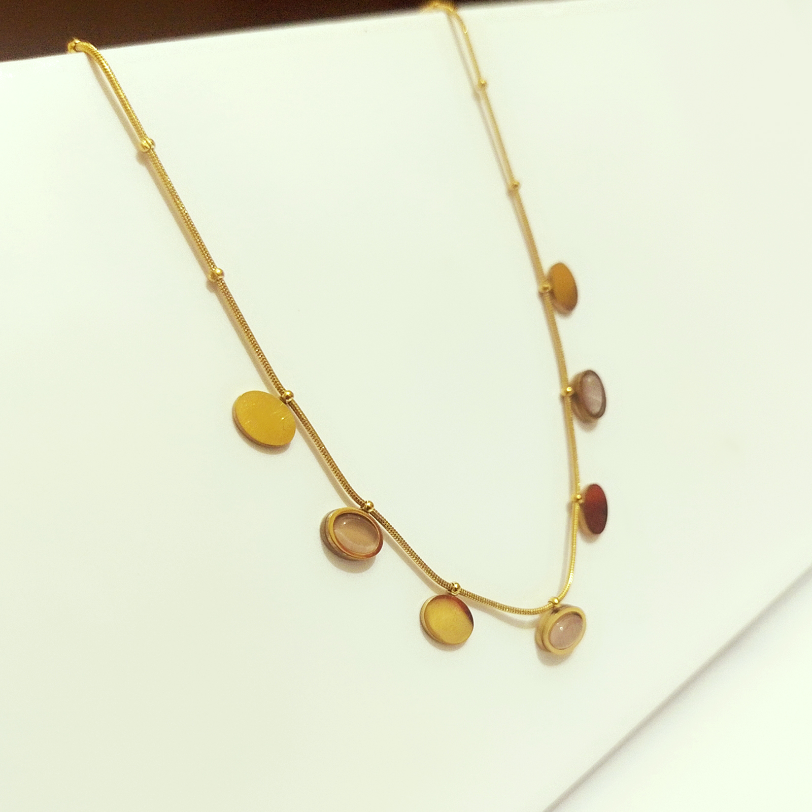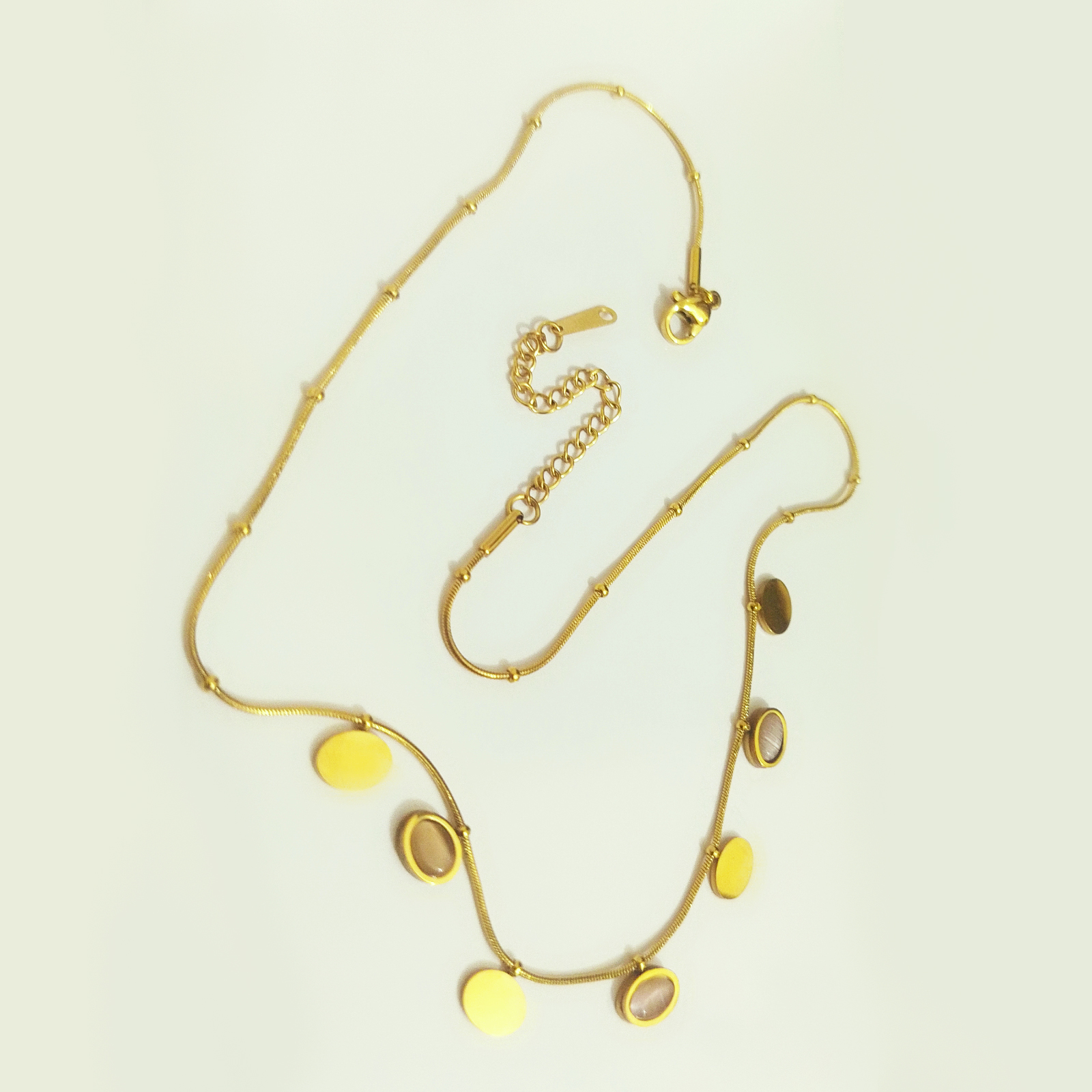 Dainty Snake Chain Necklace with Muted Oval Pendants