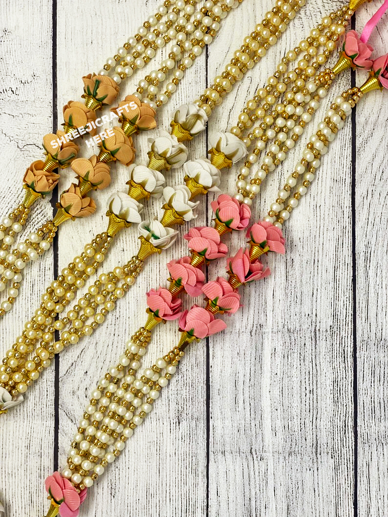 * Material: (Artificial Pearls, Beads, Thread, Ribbon)